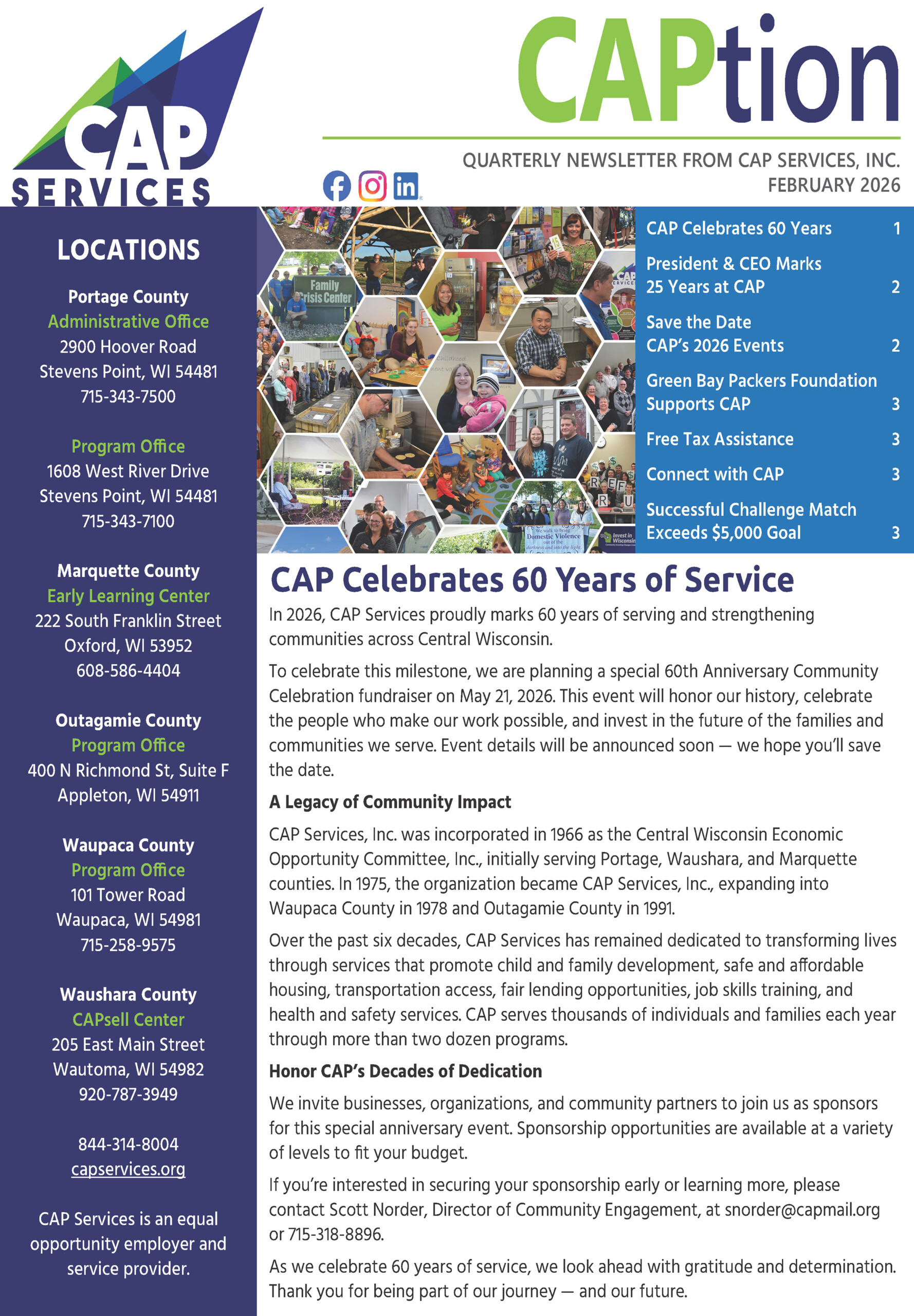 Looking for a way to stay up to date on CAP Services’ work?
